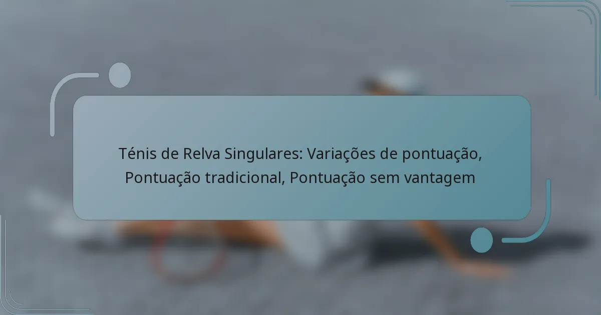 O ténis de relva em singulares apresenta vários sistemas de pontuação que influenciam a dinâmica do jogo, sendo a pontuação tradicional e a pontuação sem vantagem as mais proeminentes. A pontuação tradicional utiliza um sistema de pontos único de 15, 30 e 40, exigindo que os jogadores ganhem por dois jogos para assegurar um set. Em contraste, a pontuação sem vantagem simplifica o processo ao decidir o vencedor de um jogo diretamente após o empate, aumentando o ritmo de jogo.